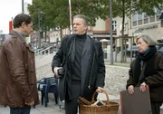 KinderherzLars (Ingo Naujoks, l.) und Finn (Sven Martinek, M.) treffen auf die Mutter des Opfers, Maria Nieberg (Ingrit Dohse, r.).Bild: © ARD/Georges Pauly