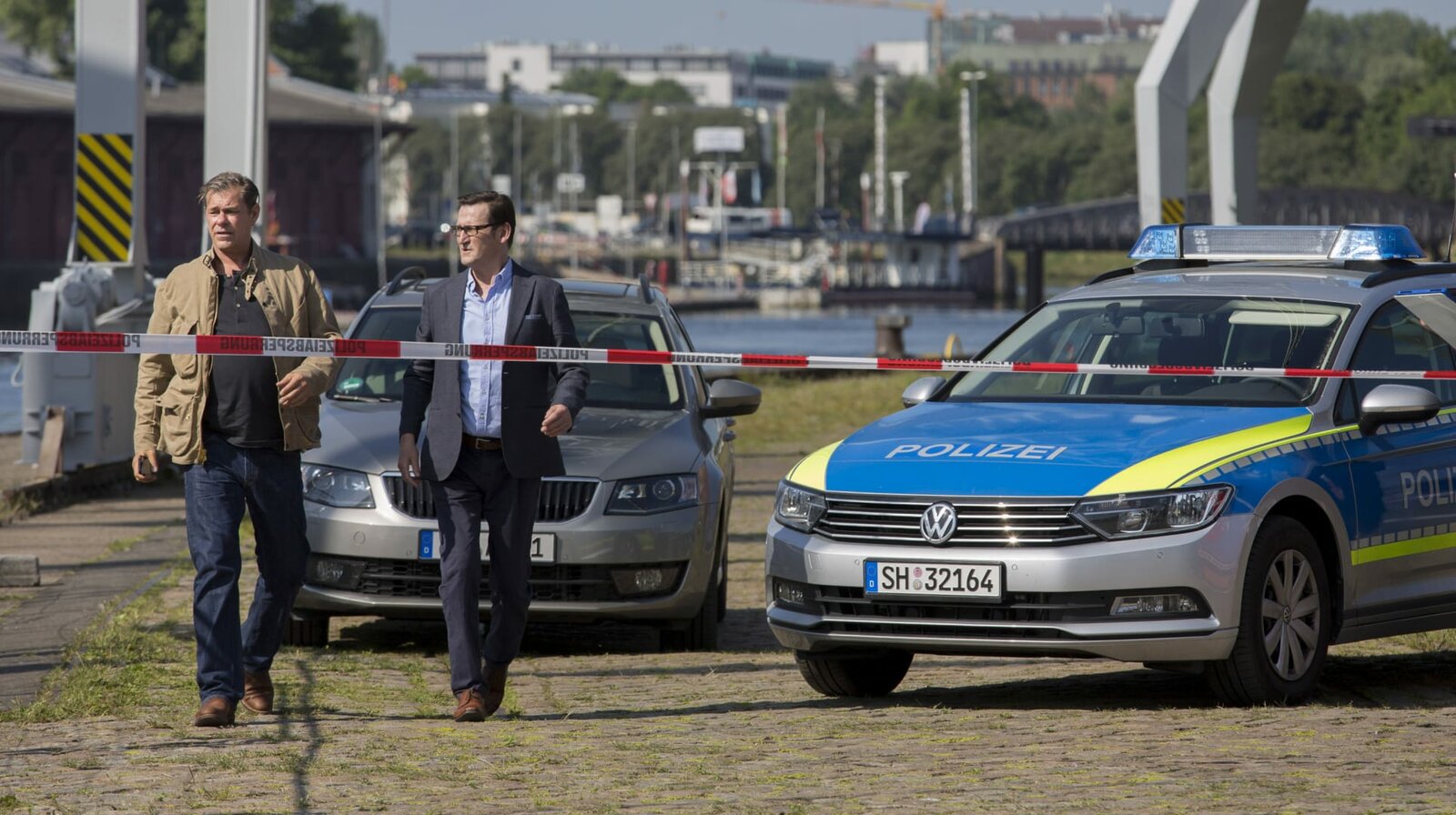 Zweite ChanceDie Ermittler Finn Kiesewetter (Sven Martinek, l.) und Lars Englen (Ingo Naujoks, r.) auf dem Weg zum Tatort.Bild: © NDR/ARD/Georges Pauly