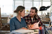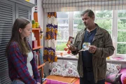 Im NetzFinn Kiesewetter (Sven Martinek, r.) zeigt Paula (Johanna Werner , l.) zerknüllte Fotos vom Freund ihrer Schwester Nadine. War Paula auf ihre Schwester eifersüchtig?Bild: © ARD/Georges Pauly