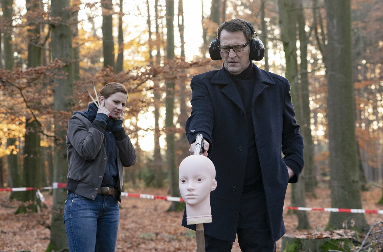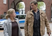 Mann am SpießFinn Kiesewetter (Sven Martinek, r.) und Kollegin Sandra Schwartenbeck (Marie-Luise Schramm, l.) haben einen neuen Mordfall zu klären.Bild: © MDR/Georges Pauly
