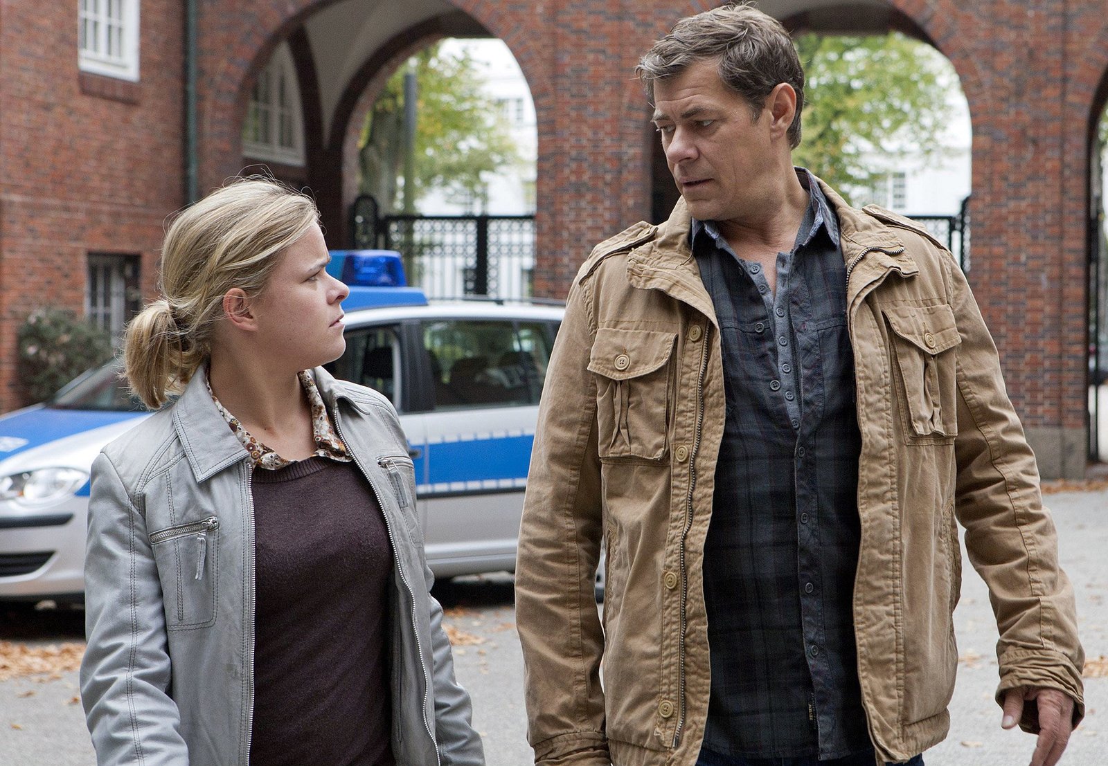 Hals über KopfARD HEITER BIS TÖDLICH - MORDEN IM NORDEN, neue Krimiserie am Vorabend mit 16 Folgen, Folge 8 "Hals über Kopf", am Dienstag (10.04.12) um 18.30 Uhr im Ersten. Der Lübecker Schlagersänger Hauke Österbotten wurde Opfer eines Mordanschlags. Sandra (Marie-Luise Schramm, r.) und Finn (Sven Martinek, l.) ermitteln.Bild: © ARD/Georges Pauly