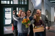 Aus LiebeErnst geht in den Ruhestand - die Kollegen verabschieden ihn. V.l.n.r. Finn (Sven Martinek), Ernst (Jürgen Uter), Lars (Ingo Naujoks), Schroeter (Veit Stübner), Nina (Julia Schäfle)Bild: © ARD/Georges Pauly