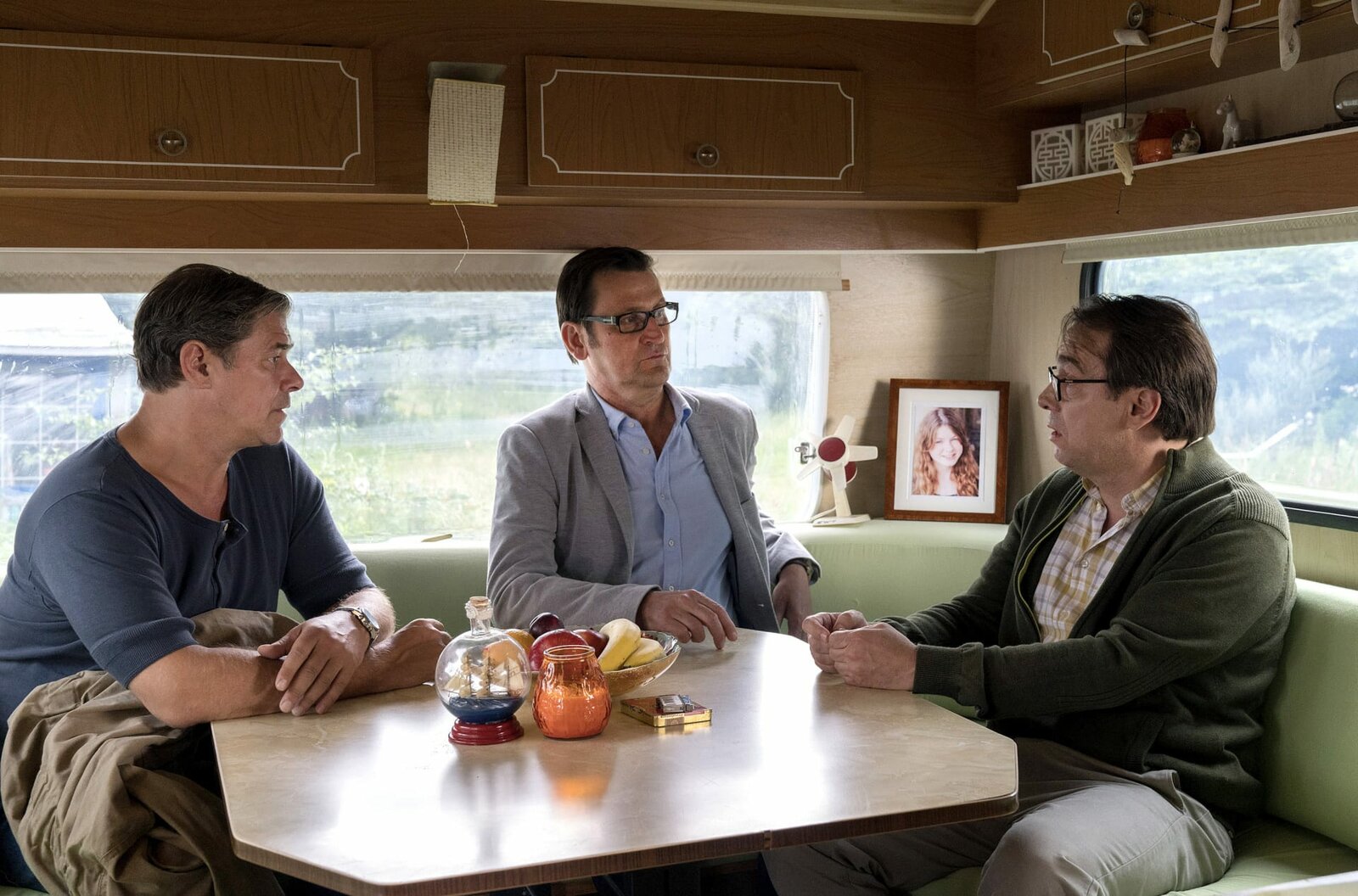 Mitten ins HerzFinn (Sven Martinek, M.) und Lars (Ingo Naujoks, r.) kümmern sich um Bettina Kynast (Maureen Havlena, l.).Bild: © ARD/Georges Pauly