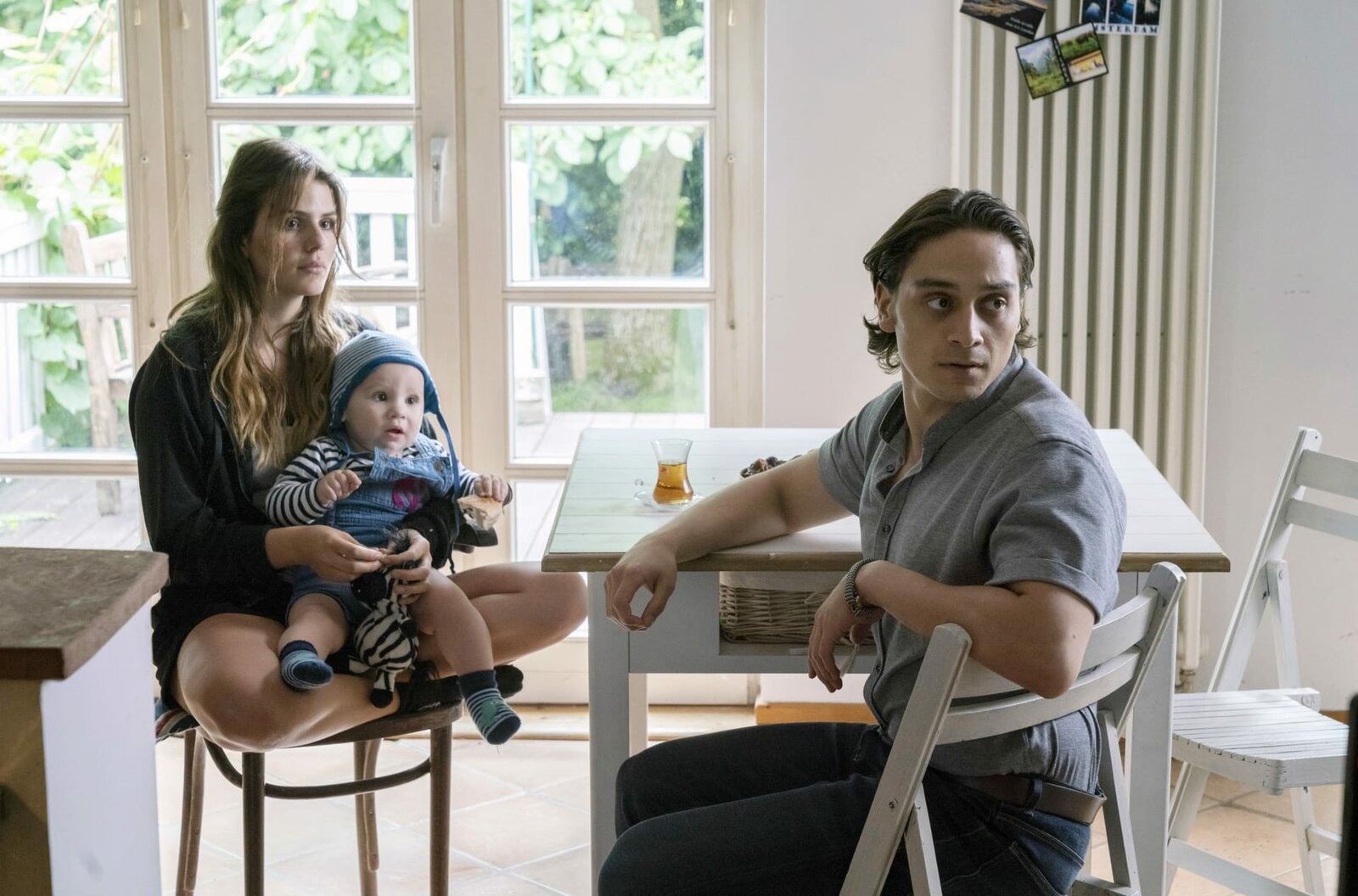 Heile FamilieMia Watzke (Ruby O. Fee, l.), ist mit dem Baby Nicklas (Umut Tzitzi Giousouf, M.) und ihrem Freund Cem Ergün (Yasin Boynuince, r.) untergetaucht.Bild: © WDR/ARD/Georges Pauly