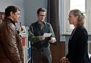 Duft des TodesDer Parfümeur Jörg Hefner stirbt, nachdem der zwei Züge von einer Zigarre genommen hat. Sandra (Marie-Luise Schramm, r.), Finn (Sven Martinek, M.) und Schroeter (Veit Stübner, l.) sprechen über den Fall.Bild: © WDR/ARD/Georges Pauly
