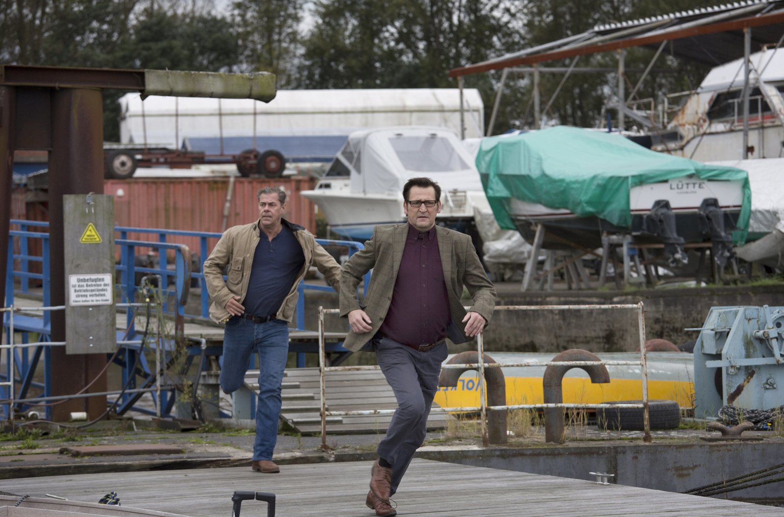 Der Tod ist nicht das EndeFinn Kiesewetter (Sven Martinek, l.) und Lars Englen (Ingo Naujoks, r.) verfolgen einen Verdächtigen.Bild: © ARD/Georges Pauly