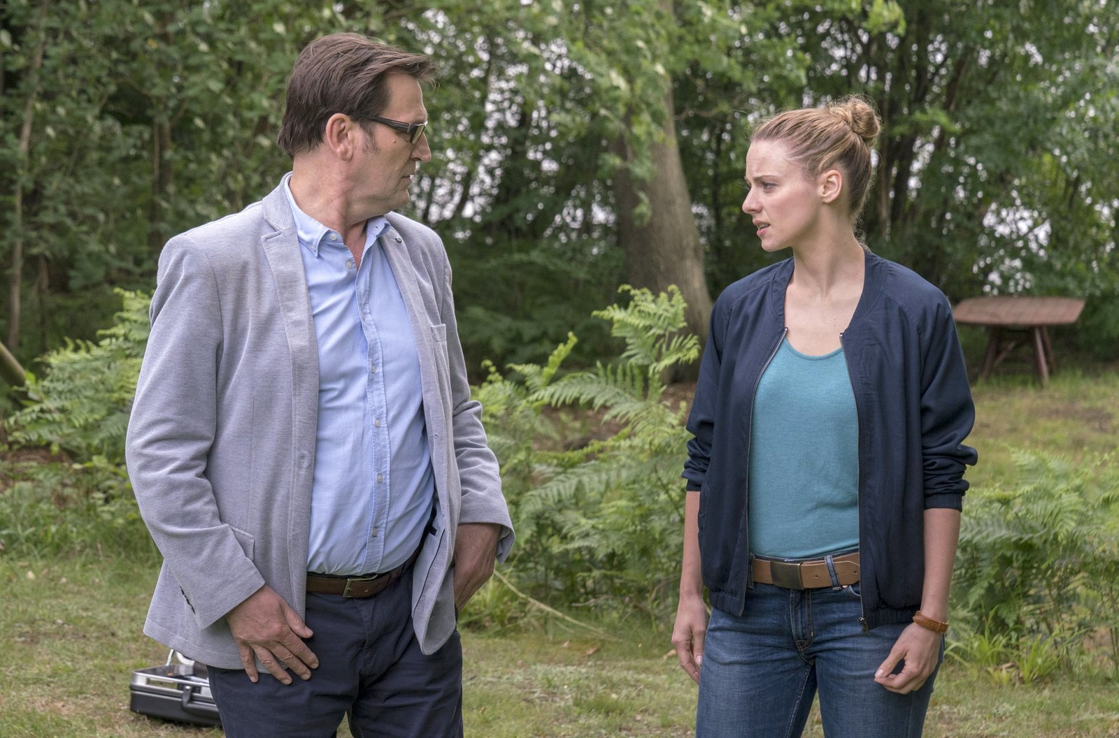 LiebesblindLars (Ingo Naujoks) und Nina (Julia Schaäfle) besprechen sich zum aktuellen Fall.Bild: © ARD/Georges Pauly