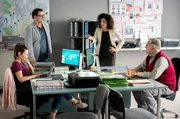 Der Tod ist nicht das EndeNina (Julia Schäfle, l.) erklärt Finn (Sven Martinek, 2.v.r.) und Strahl (Christoph Tomanek, r.) was sie herausgefunden hat.Bild: © ARD/Georges Pauly