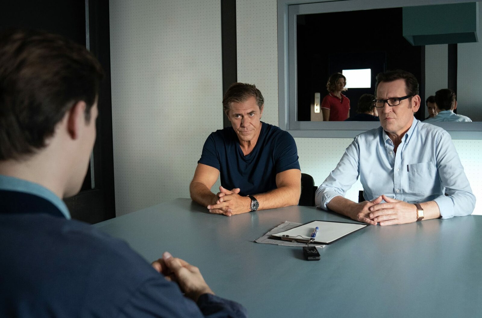 Die gute UteMDR Fernsehen HEITER BIS TÖDLICH - MORDEN IM NORDEN FOLGE 20, "Die gute Ute", am Montag (25.05.15) um 23:45 Uhr. Dr. Alexander Henglooten (Moritz Lindbergh, l.) hat Ute Schorn, die Betreuerin seines Sohnes Thorben überfahren. Er meldet sich selbst ganz verstört bei der Polizei. Finn Kiesewetter (Sven Martinek, M.) und Sandra Schwartenbeck, r.) befragen ihn zum Unfallhergang.Bild: © MDR/ARD/Georges Pauly