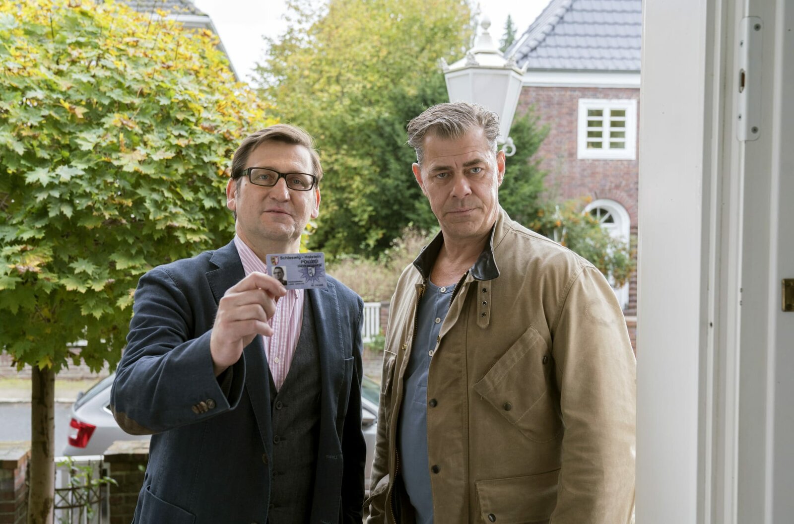 Schwarzer PeterLars (Ingo Naujoks, l.) und Finn (Sven Martinek, r.) bitten um Einlass.Bild: © WDR/ARD/Georges Pauly