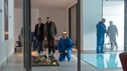 ReifeprüfungNachdem Esther Gleims (Petra van de Vooret, 2.v.l.) in ihrem eigenen Haus erschlagen wurde, untersuchen Lars Englen (Ingo Naujoks, l.), Finn Kiesewetter (Sven Martinek, 2.v.r.) und Rechtsmediziner Dr. Strahl (Christoph Tomanek, r.) ihre Leiche.Bild: © ARD/Christine Schröder