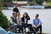 Dunkle WasserAlexander Blohms drei WG-Mitbewohner erheben schwere Vorwürfe gegen den Toten. V.l.n.r. Jonas Gründel (Martin Bruchmann), Lara Schulz (Zsa Zsa Inci Bürkle), Meike Rossdorf (Ada Philine Stappenbeck), Lars (Ingo Naujoks), Finn (Sven Martinek)Bild: © ARD/Georges Pauly