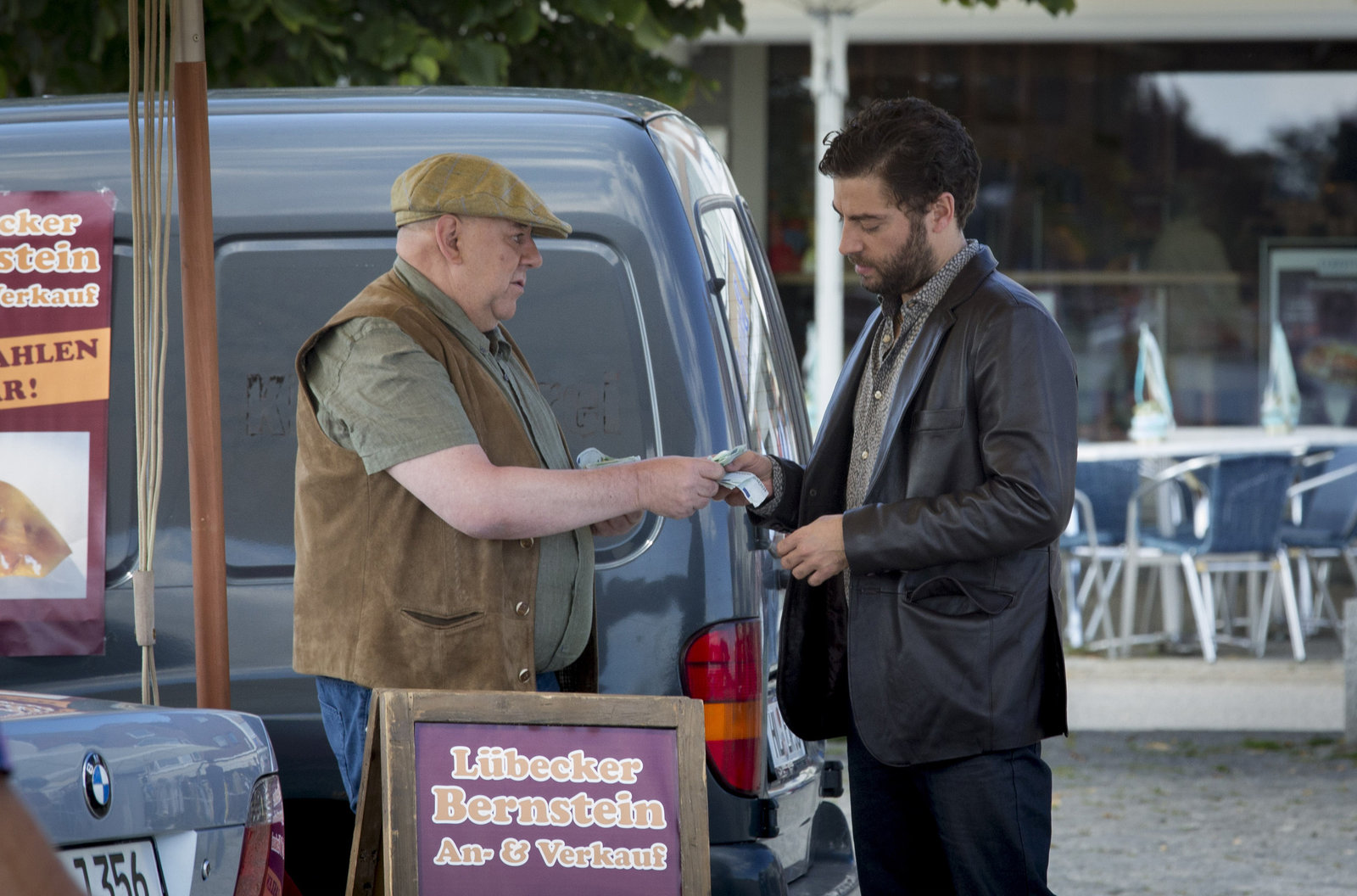 BernsteinfieberWas haben der fliegende Händler Kai Ahrens (Hendrik Arnst, l.) und der Stripclub-Besitzer Bojan Vesic (Timur Isik, r.) miteinander zu tun?Bild: © ARD/Georges Pauly