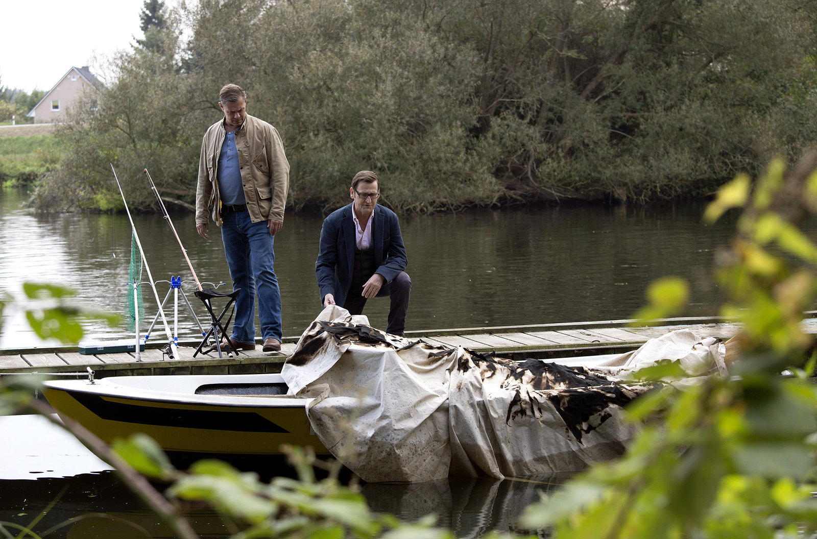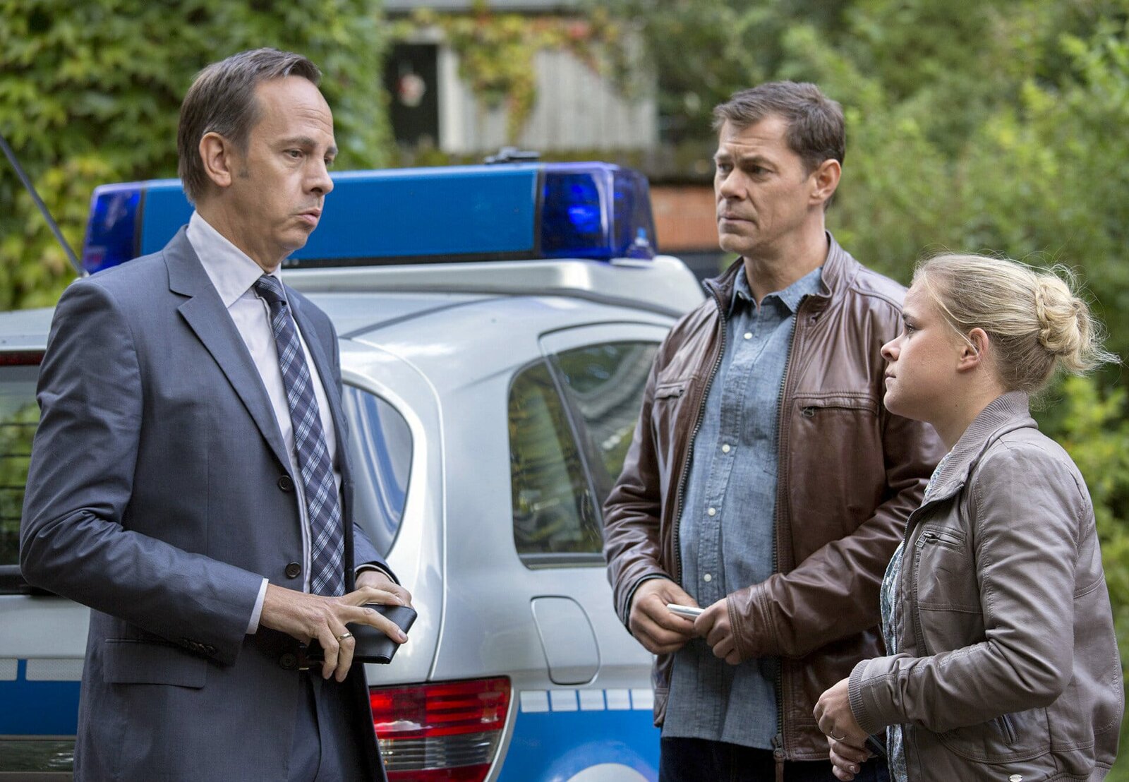 Im NetzFinn Kiesewetter (Sven Martinek, l.) und Lars Englen (Ingo Neujoks, r.) ermitteln im Fall 17-jährige Nadine Bomke, die von ihrer Schwester Paula mit einem Kopfschuss tot im Wald aufgefunden wurde.Bild: © ARD/Georges Pauly
