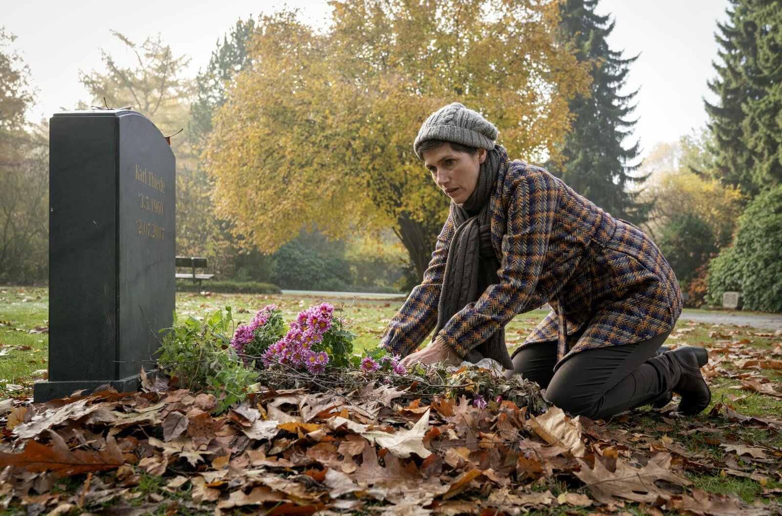 Alte HeimatMareike Singer (Victoria Fleer) bemerkt überrascht, wer da auf den Friedhof kommt.Bild: © ARD/Georges Pauly