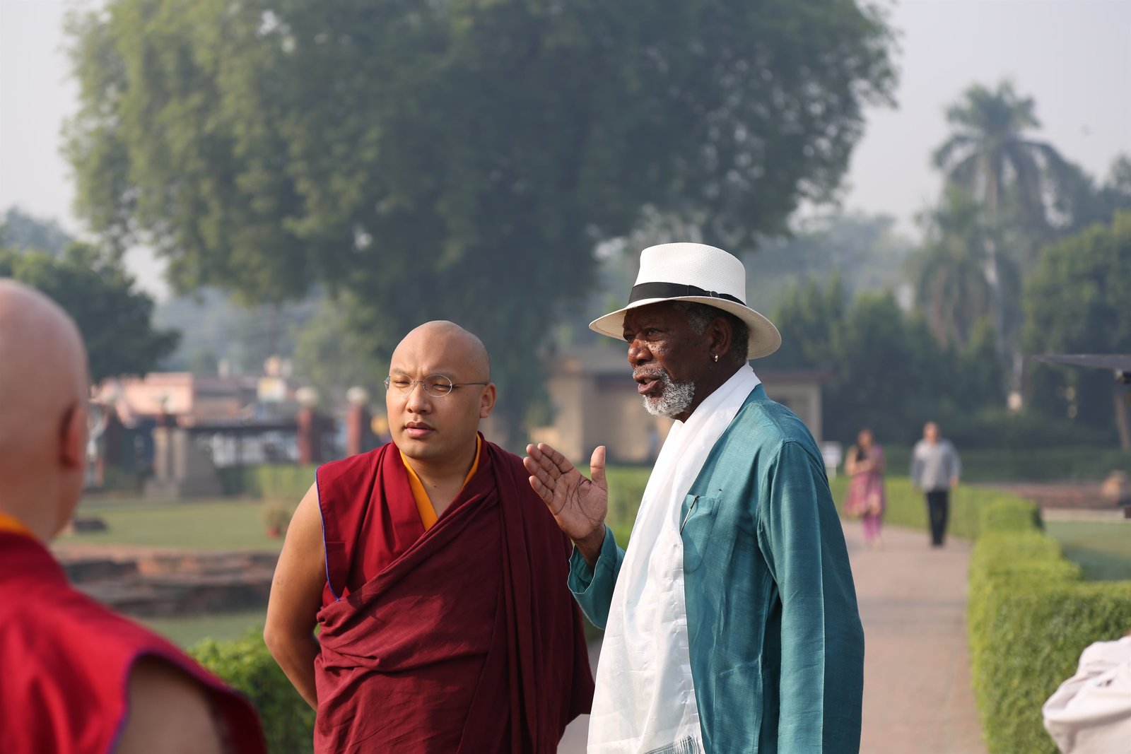 Das Ende der WeltMorgan Freeman spricht mit Seiner Heiligkeit dem 17. Gyalwa Karmapa in Bodhgaya, der heiligsten Stätte des Buddhismus.Bild: © Copyright © The National Geographic Channel.