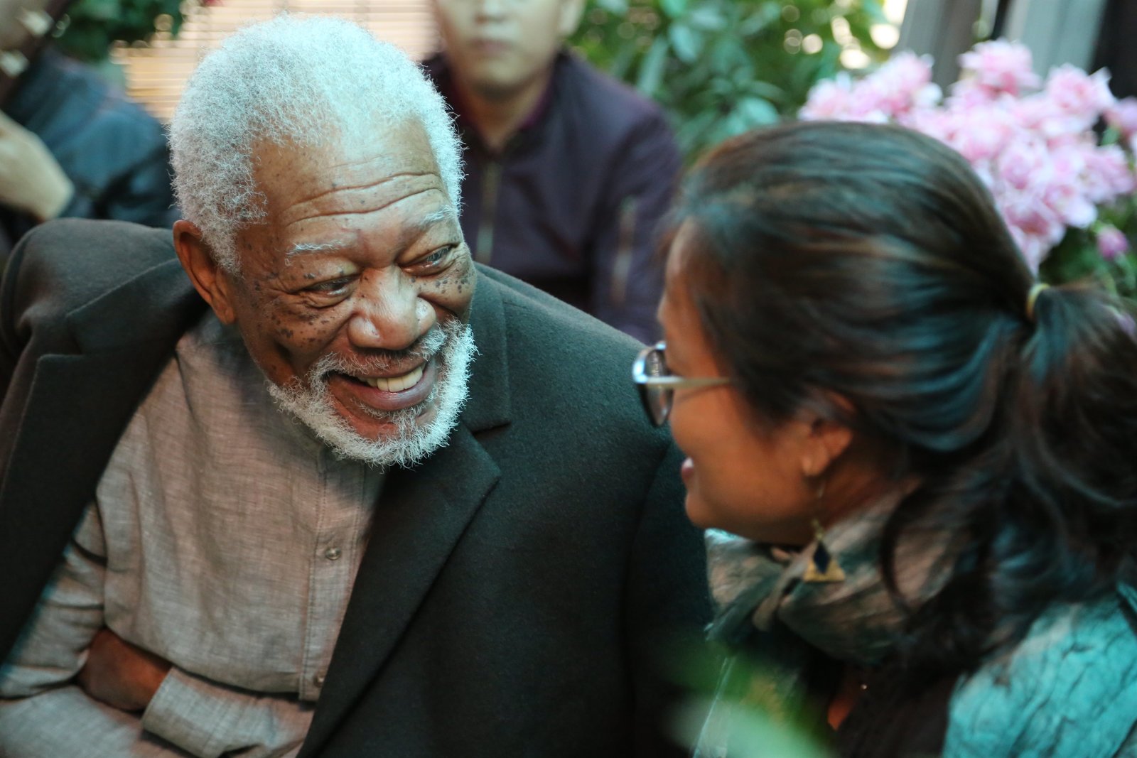 Götter auf ErdenMorgan Freeman discusses with Bui Thi Kim Khue during the spirit medium ritual performed by Nguyen Ngoc Vi.Bild: © National Geographic