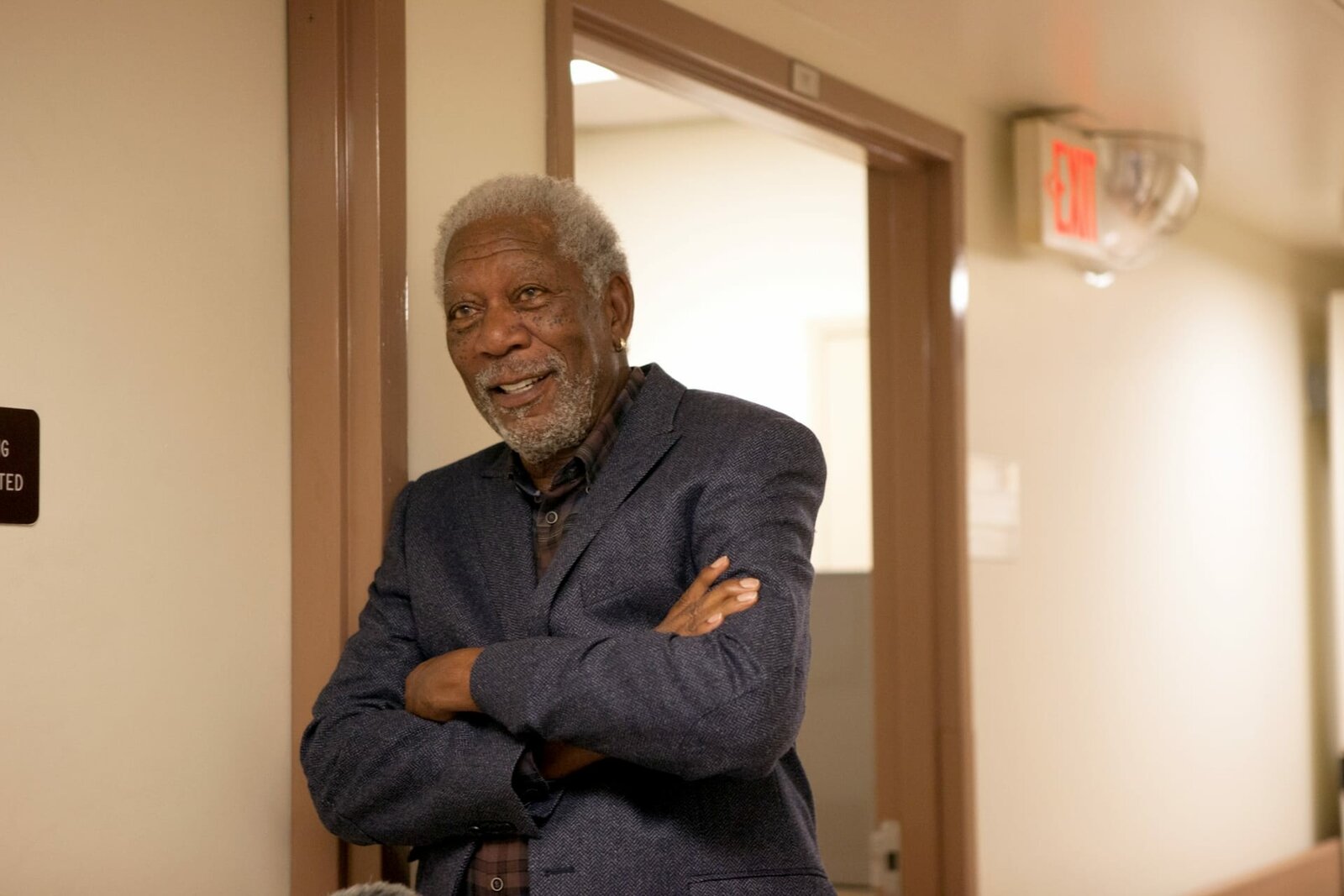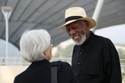 Heilige GesetzeMorgan Freeman laughs during a conversation on set outside of The Israel Museum in Jeruselem.Bild: © National Geographic