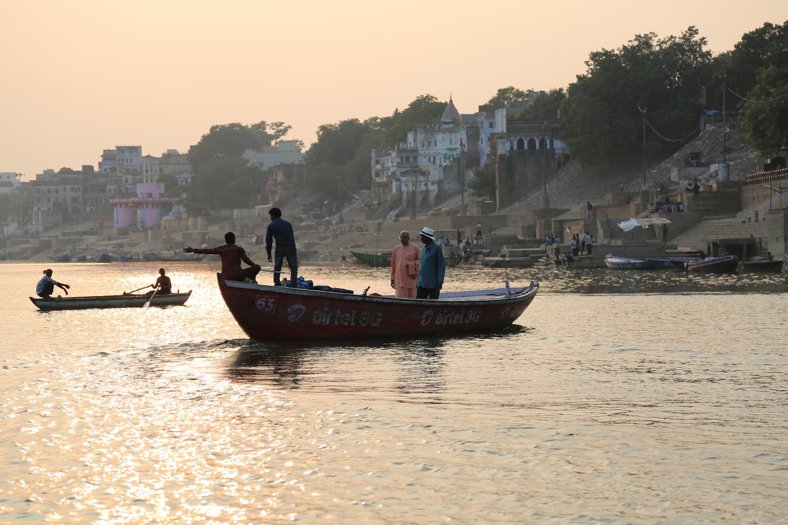 Im JenseitsVARANASI, INDIA - Morgan Freeman stands next to Swami Varishthananda on a small boat on the Ganges River in Varanasi, India.Bild: © Copyright © The National Geographic Channel.