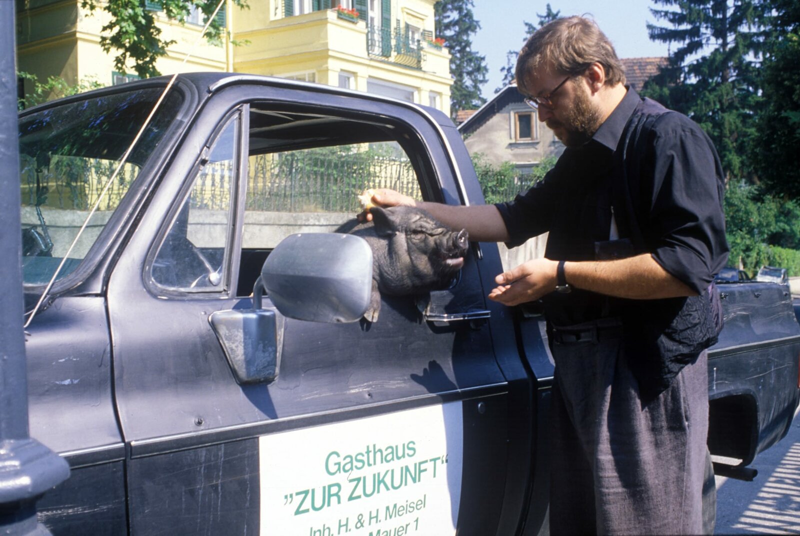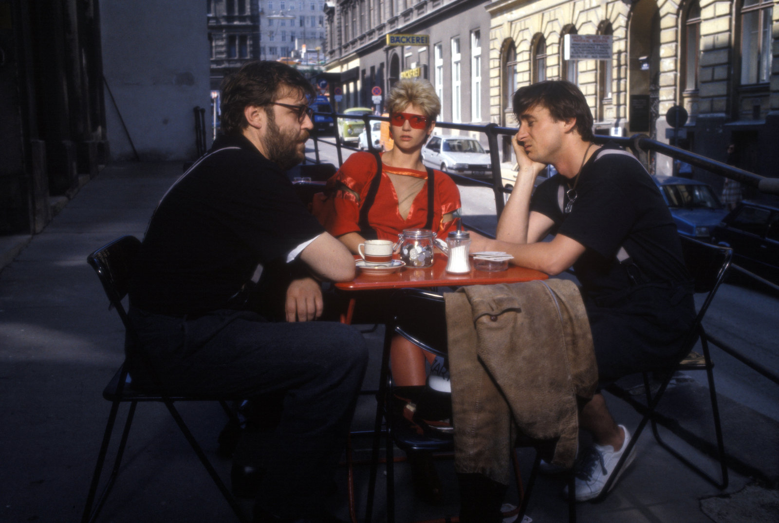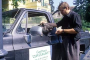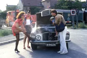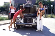 Ein heißer Tag"Mozart und Meisel", "Ein heißer Tag." Mozart fährt aushilfsweise Taxi. Einen heißen Sommernachmittag lang kurvt er durch Wien mit einem Baby, das dringend gewickelt werden muss, und zwei Frauen, die einen Wohnungsschlüssel suchen. Währenddessen versteckt Meisel in seinem Gasthausgarten Krista, Mozarts neue Freundin, vor Lucy, Mozarts bisheriger Freundin, die unerwartet von Werbefilmdreharbeiten zurückgekehrt ist.Im Bild (v.li.): Joe Berger (Taxifahrer), Götz Kauffmann (Meisel).Bild: © ORF III