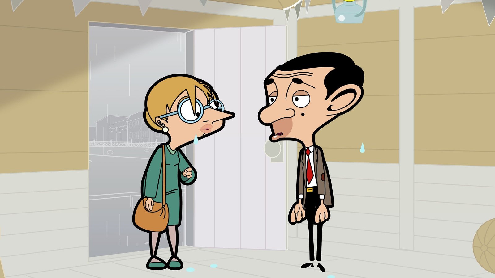 Muckis für Mr. BeanL-R: Mr. Bean (voiced by Rowan Atkinson), Irma Gobb (voiced by Matilda Ziegler)Bild: © Boomerang (DE) / Tiger Aspect Productions 2014 Ltd