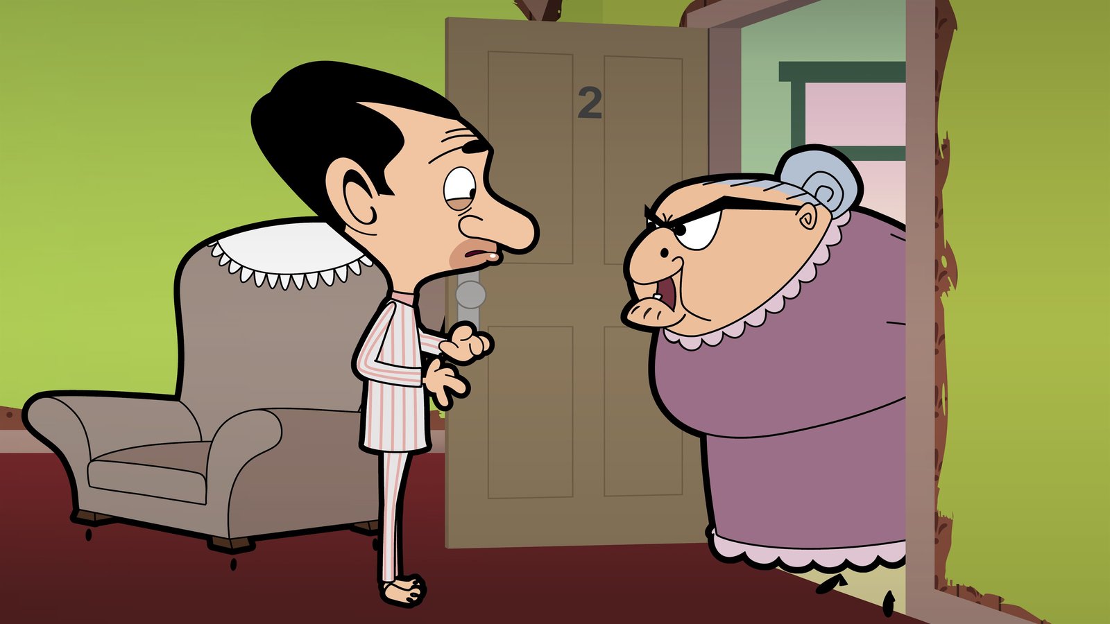 Der AlbtraumL-R:Mrs. Wicket (voiced by Sally Grace), Mr. Bean (voiced by Rowan Atkinson)Bild: © Boomerang (DE) / Tiger Aspect Productions 2014 Ltd