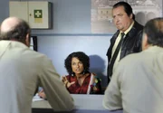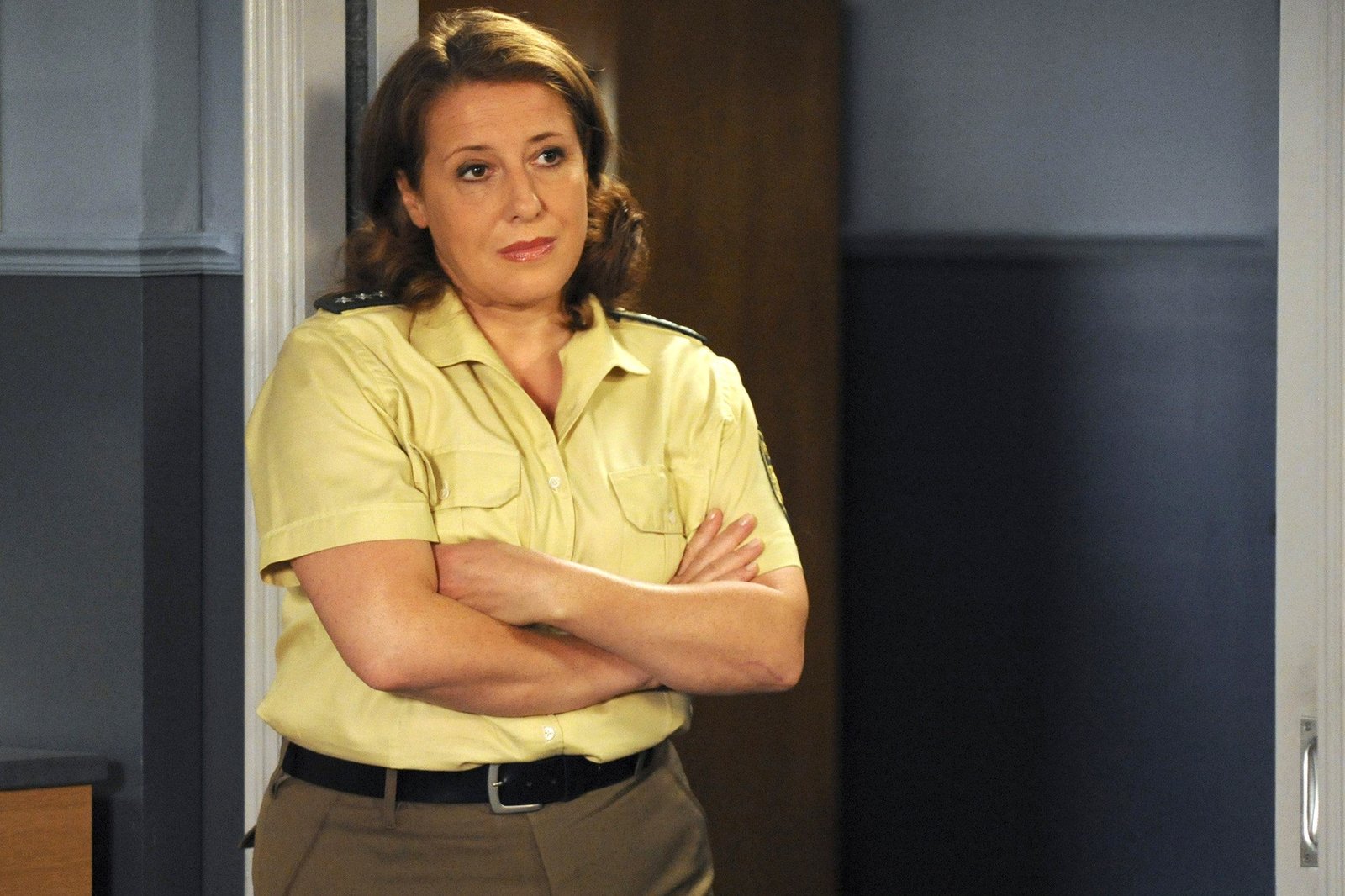 JanoschARD/HEITER BIS TÖDLICH - MÜNCHEN 7, Krimiserie mit 8 neuen Folgen, Folge 15 "Janosch", am Mittwoch (29.05.13) um 18.50 Uhr im Ersten. Thekla (Luise Kinseher) beobachtet die Befragung von Janosch.Bild: © Barbara Bauriedl