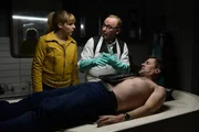 Was vom Leben übrig bleibtIm Waschraum des Bestattungsinstituts begibt sich Harald Neuhauser (Marcus Mittermeier) in die Lage des Josef und Angelika Flierl (Bernadette Heerwagen) ist Eva. Ludwig Schaller (Alexander Held) leitet die "Obduktion".Bild: © ZDF und J?ürgen Olczyk./J?ürgen Olczyk
