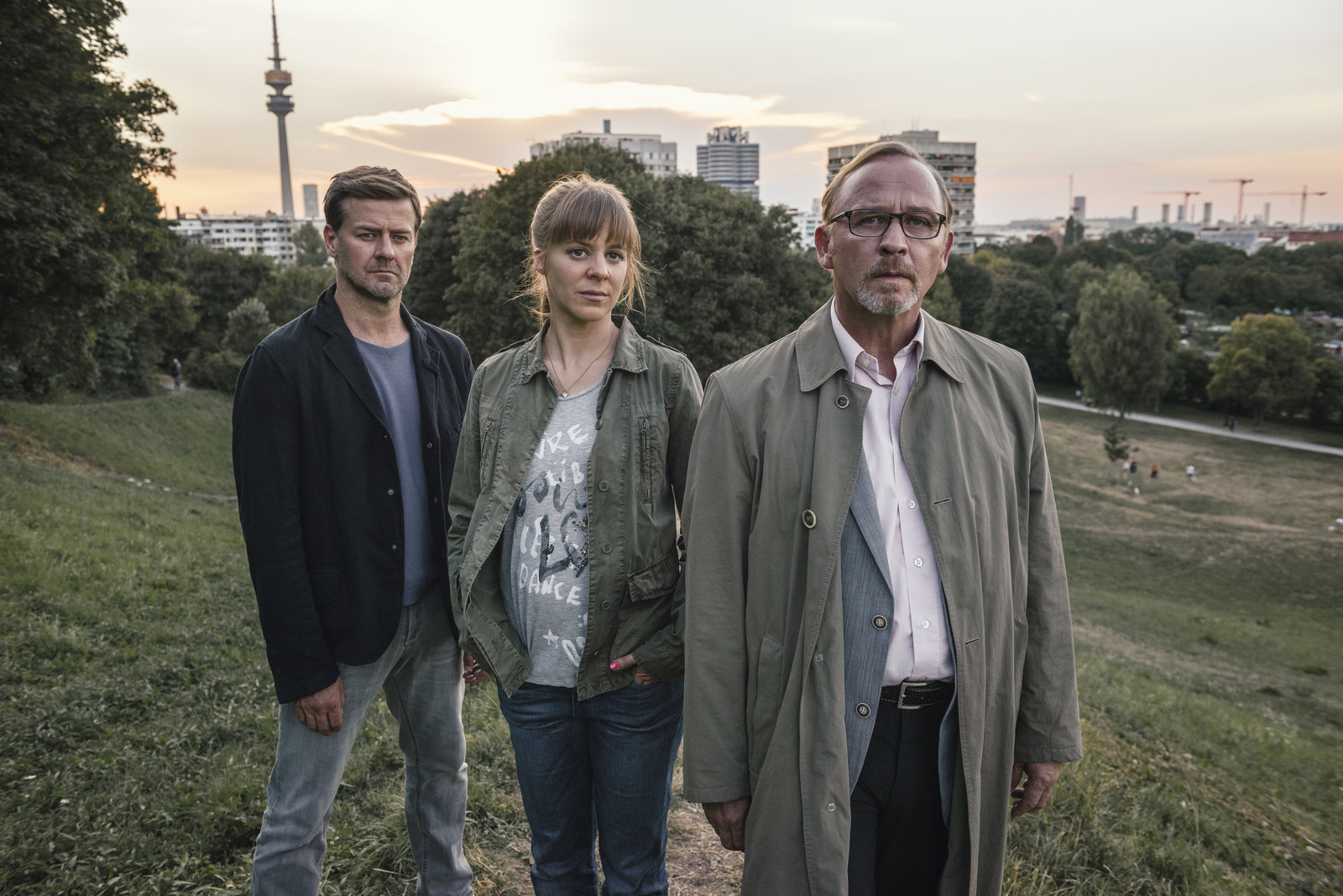Wo bist Du, FeiglingDie Kommissare Harald Neuhauser (Marcus Mittermeier, l.), Angelika Flierl (Bernadette Heerwagen, M.) und Ludwig Schaller (Alexander Held, r.) im Luitpoldpark. Handelt es sich bei ihrem neuen Fall um eine Zufallsbegegnung, bei der sich keine Verbindung zwischen Täter und Opfer herstellen lässt - also die Angst eines jeden Ermittlers? Die Kommissare geben ihr Bestes, um den unbekannten Jogger zu finden. Können sie diesen Fall lösen oder werden sie diesmal an ihre Grenzen stoßen?Bild: © ZDF und Hendrik Heiden
