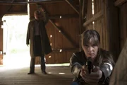 Einer der's geschafft hatIst der Täter noch im Haus? Harald Neuhauser (Marcus Mittermeier) und Angelika Flierl (Bernadette Heerwagen) zücken ihre Waffen.Bild: © ZDF und Jürgen Olczyk