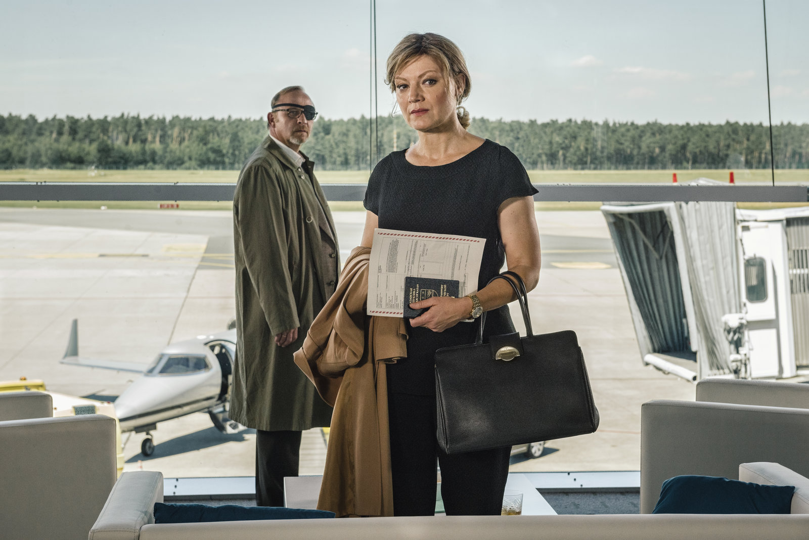 Kein Mensch, kein ProblemKommissar Ludwig Schaller (Alexander Held) und die verblüffte Victoria Sokol (Marion Mitterhammer) beobachten die Verhaftung von Pawel am Flughafen.Bild: © ZDF und Hendrik Heiden