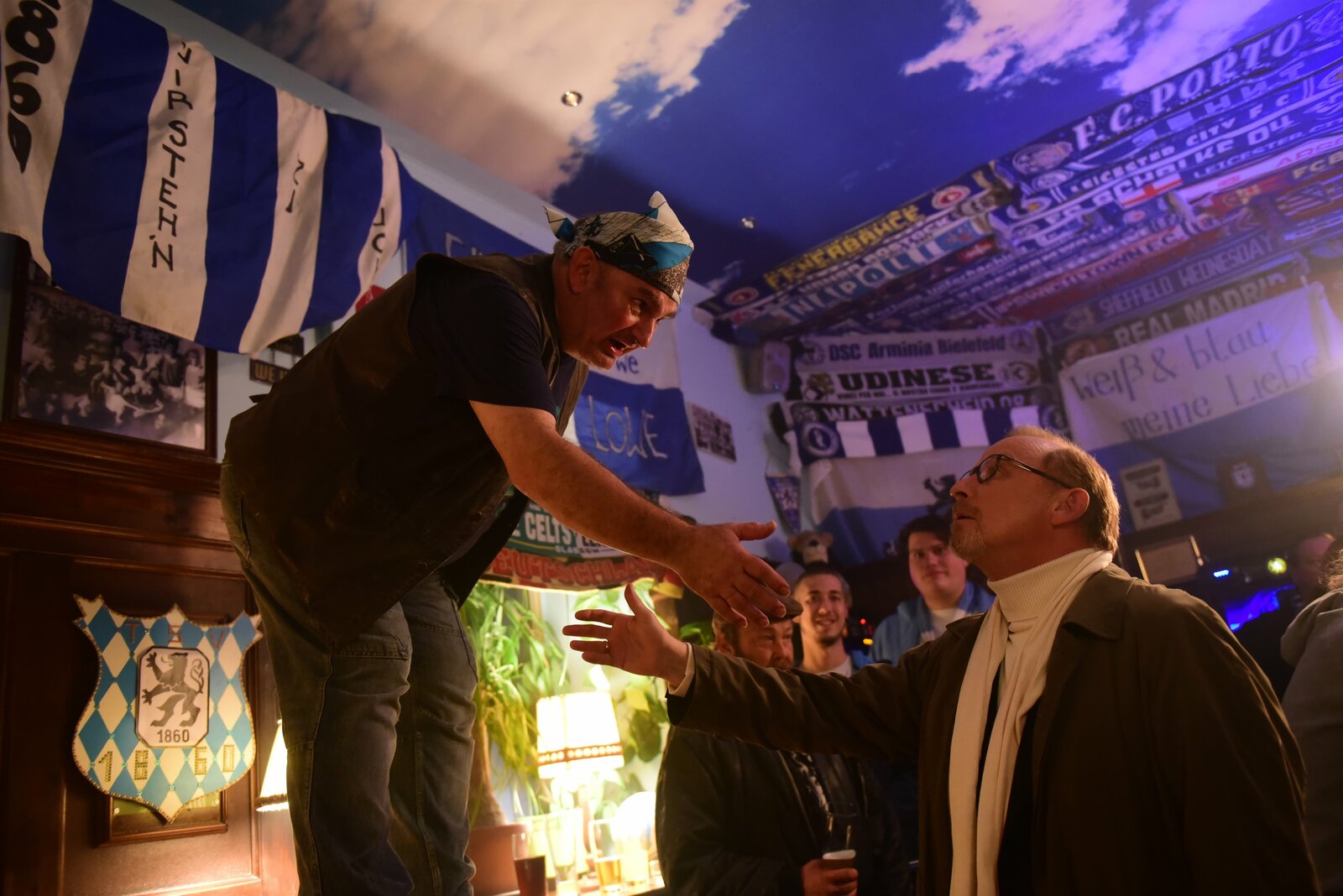 AusnahmezustandKommissar Schaller (Alexander Held) lässt sich von seinen Kollegen die genaue Adresse des Fundorts der Leiche im Münchner Viertel Giesing geben. Nach dem Fußballspiel ist dort die Hölle los. Die Fans stürmen die dortigen Kneipen zur Besprechung des Spiels.Bild: © ZDF und Jürgen Olczyk.