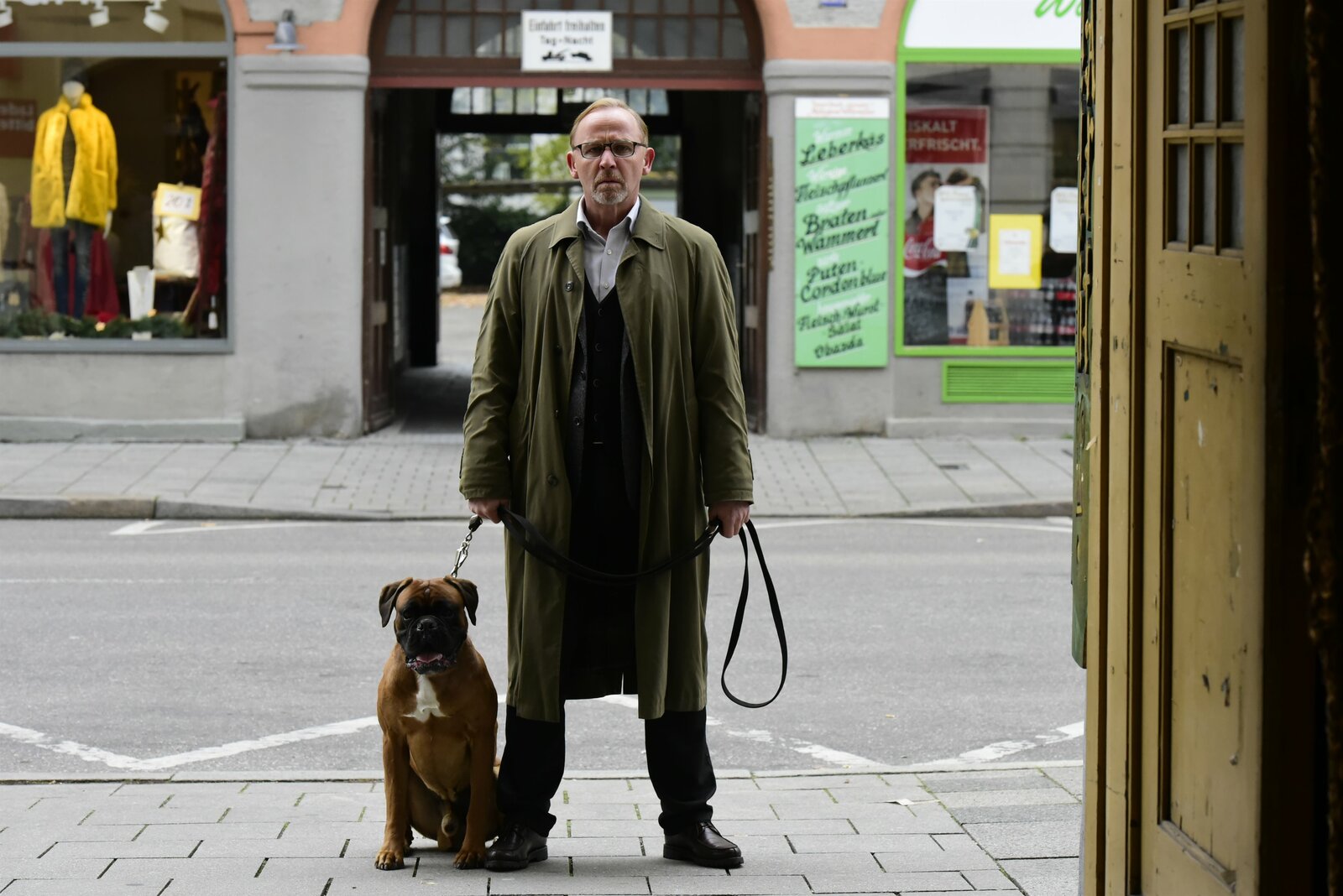 AusnahmezustandGisbert (Sigi Zimmerschied, l.) ist ein Urgestein aus Giesing, ein Seher, etwas verrückt. Doch Kommissar Schaller (Alexander Held, r.) kommt bestens mit dem möglichen Zeugen aus. Er weiß ihn zu verhören.Bild: © ZDF und Jürgen Olczyk.