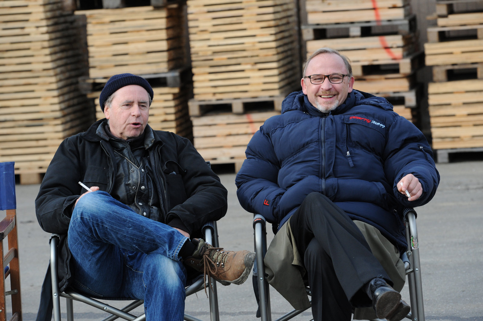 Wir sind die NeuenOn left: director Urs Egger and on right Ludwig Schaller (Alexander Held).Bild: © ZDF/Jürgen Olczyk