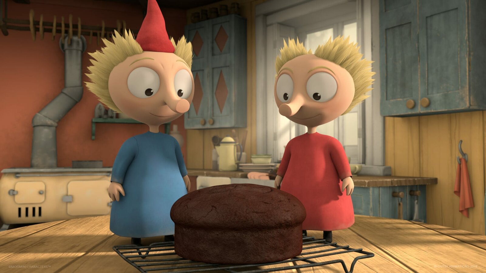 Ein leeres HeimSnufkin (r.) tröstet den einsamen Toffel.Bild: © ZDF/Moomin Characters/Gutsy Animations 2019