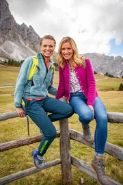 Sonja Weissensteiner unterwegs im GadertalModeratorin Sonja Weissensteiner mit Manuela Mölgg.Bild: © Action Film + Foto KG/S.a.s/BR