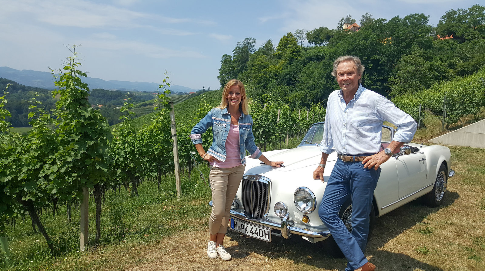 Sonja Weissensteiner unterwegs in der südlichen SteiermarkModeratorin Sonja Weissensteiner mit Schauspieler und Musiker Peter Kraus.Bild: © BR/Hartmann Seeber
