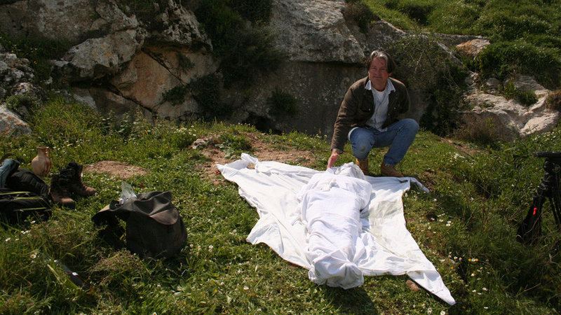 Die Kreuzigung Jesu / Die Bosnischen PyramidenJerusalem, Israel - Crew Filming - Jeremy Turner (Director), Orlando Stuart (Camerman), Shimon Gibson (Main Contributor) with man on cross recon.Bild: © WAGtv