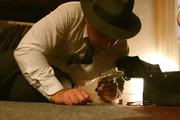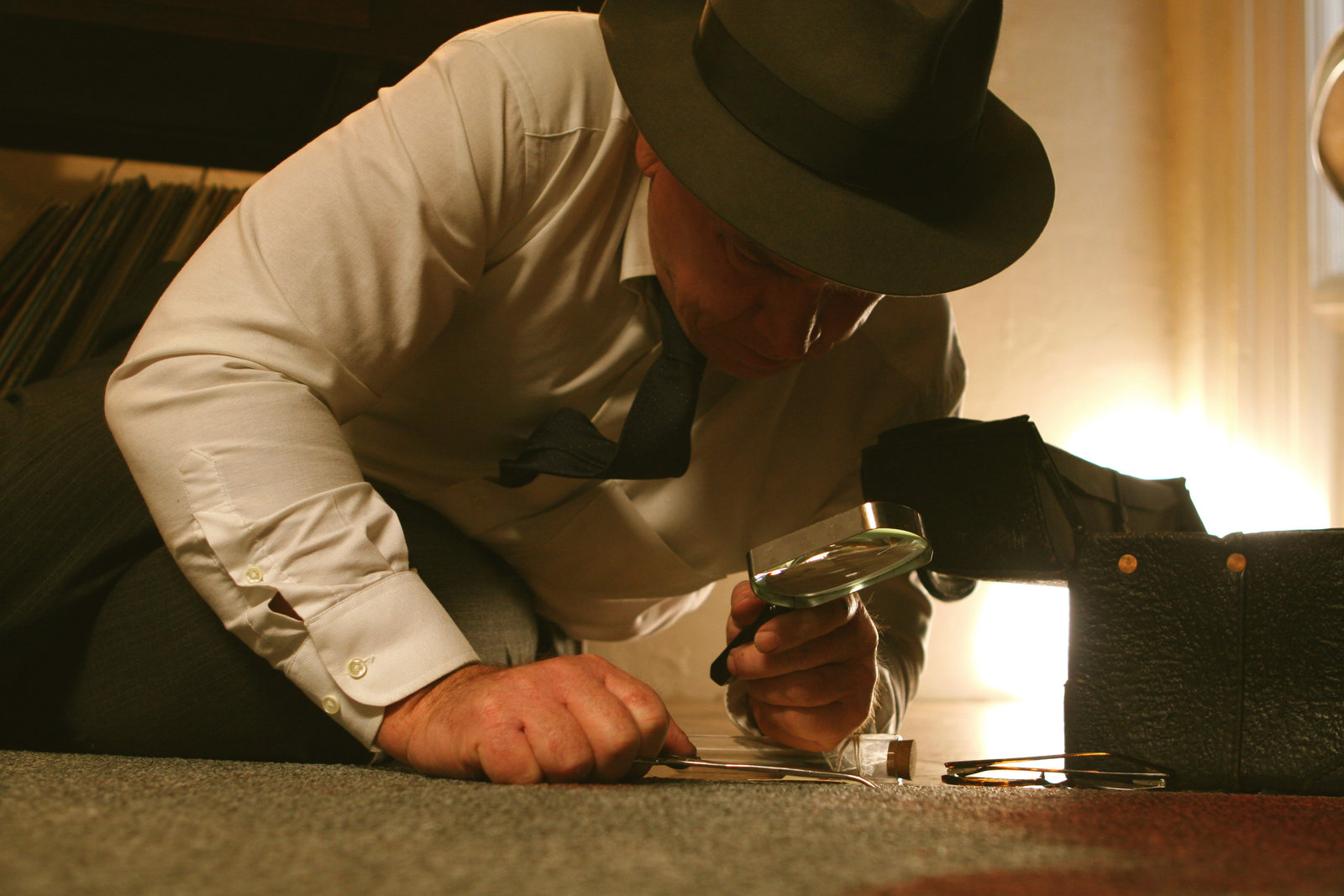 Der Mörder von BostonDetective with magnifying glass inspecting blood on carpet (Actor: Tim Halpin )Bild: © NGT