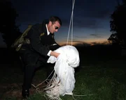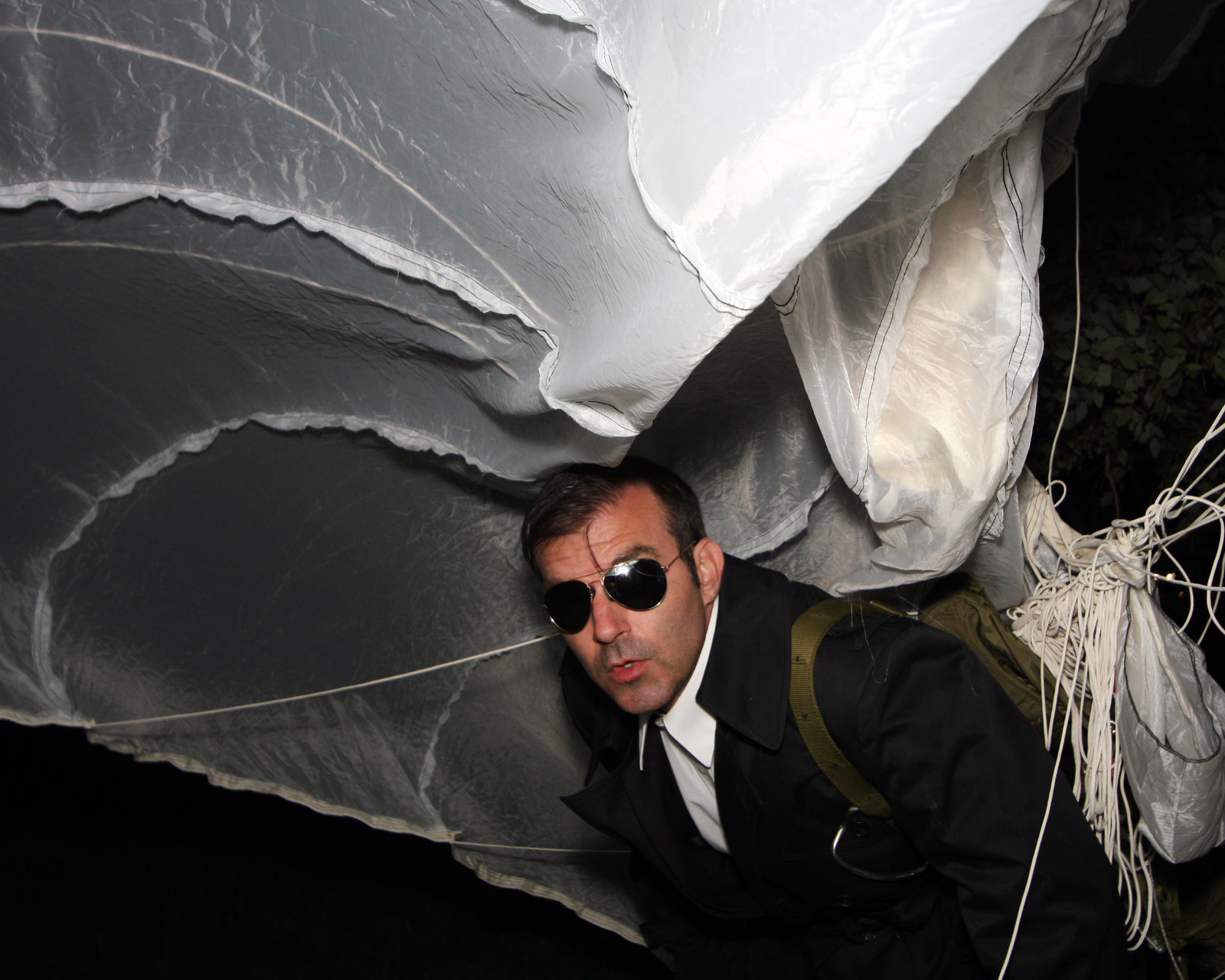 Der verschwundene LuftpiratREENACTMENT: D.B. Cooper was the first man in U.S. history to hijack a plane for ransom. The mystery of his disappearance after hijacking the plane has frustrated the FBI for nearly forty years. After he leapt out of the back of a commercial jet with a parachute and $200,000 he was never seen again--dead or alive. Pictured here, Cooper lands safely in a field. (photo credit © EDGE WEST, LLC/J Grant Buckerfield)Bild: © J Grant Buckerfield / J Grant Buckerfield / National Geographic Channels / © EDGE WEST, LLC