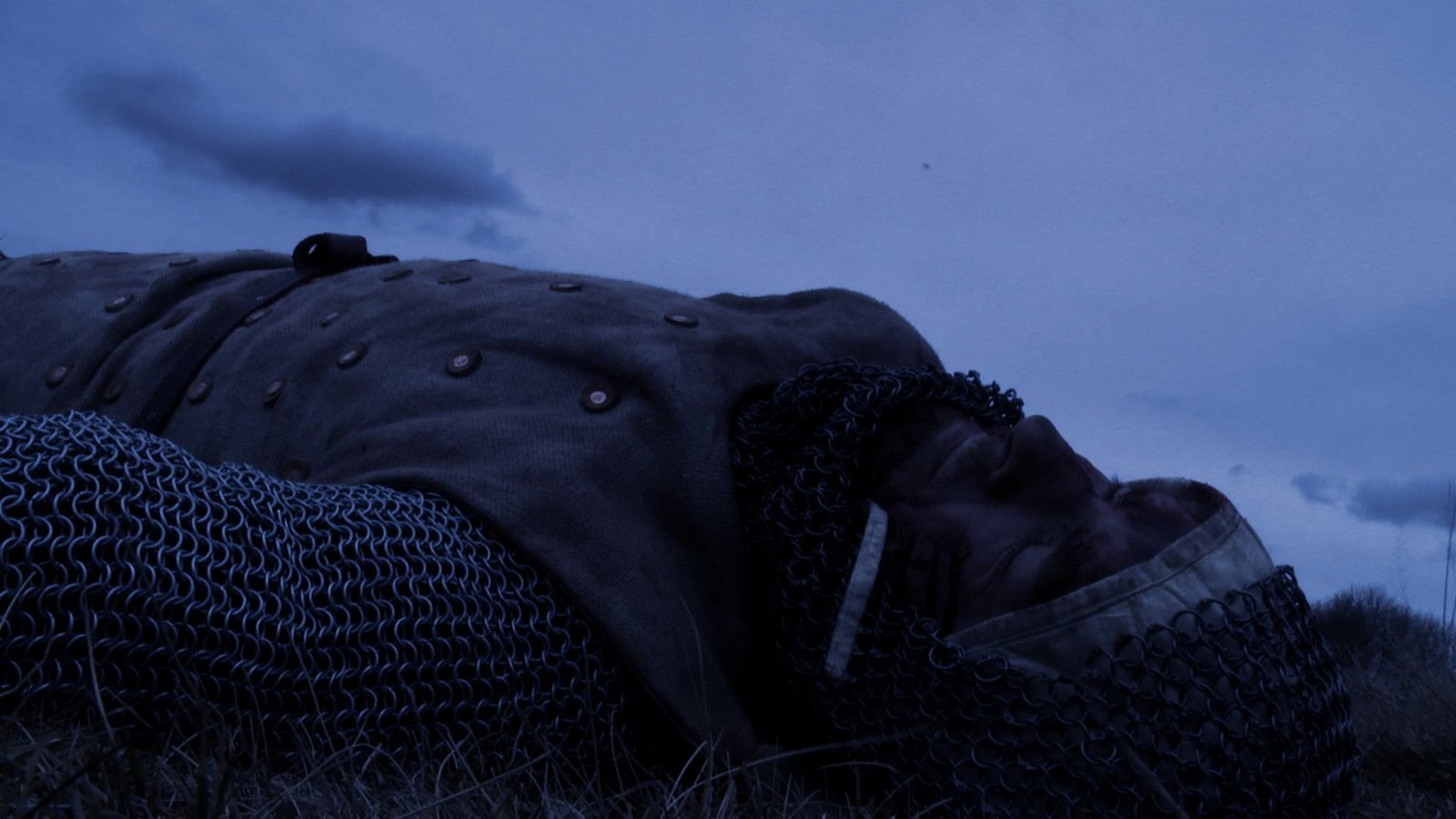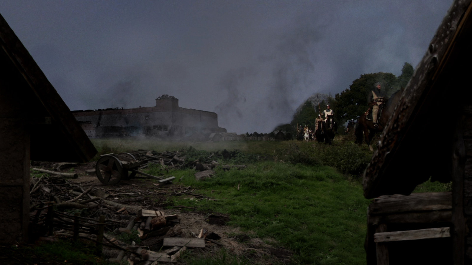 Der Ritter von St. BeesEine Gruppe von Rittern reitet an einem Schlachtfeld vorbei.Bild: © ZDF und Jeremy Freeston