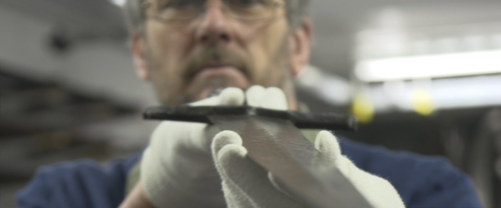 Die Schwerter von CastillonDer Archäologe Tim Sutherland untersucht ein Castillon-Schwert, Sammlung der Royal Armouries, Leeds, England.Bild: © / zdf (C)HISTORY Photocredit Mandatory, Editorial Use Only, No Archive, No Resale