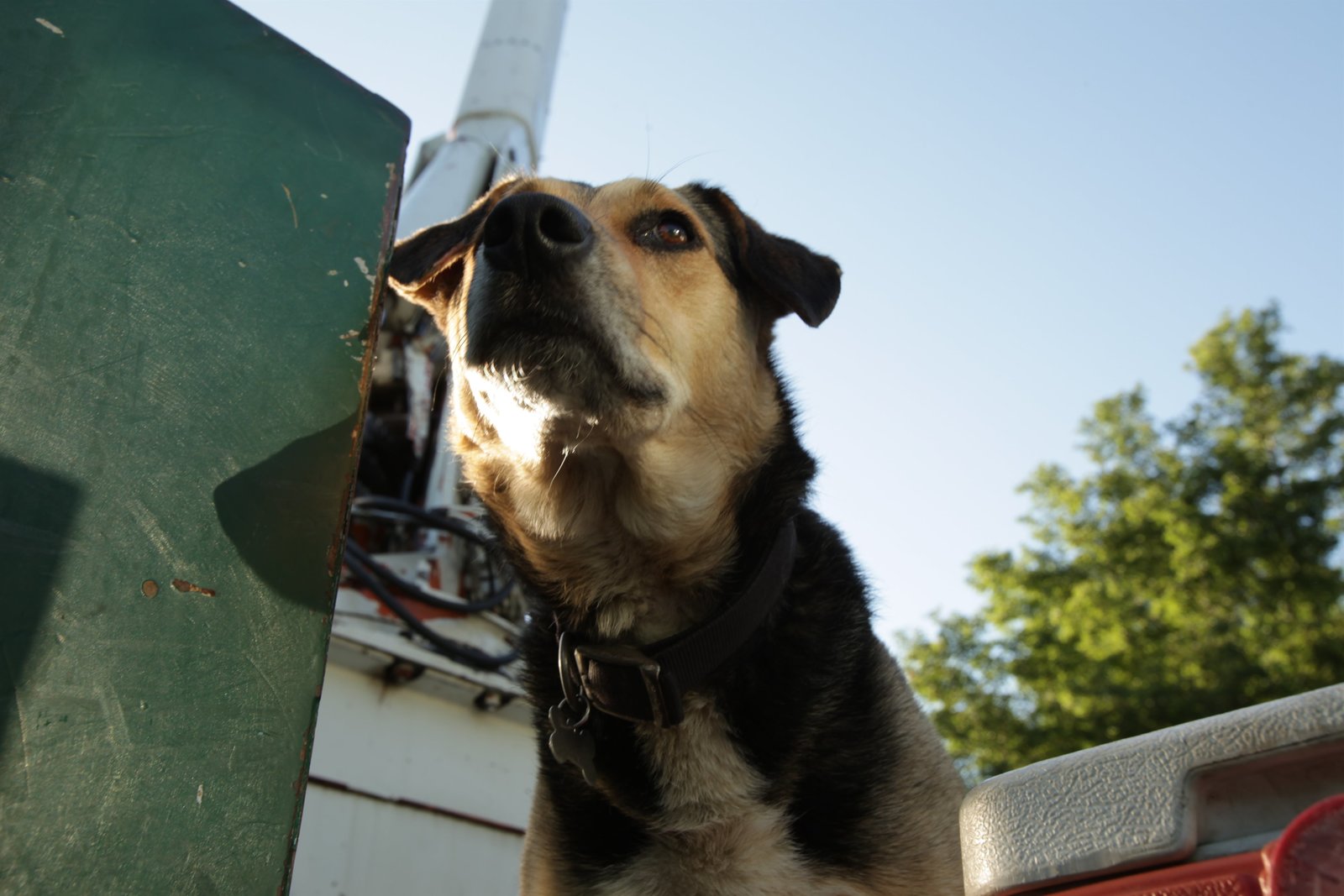 Massensterben der TiereBeebe, Arkansas - Jack keeps careful watch as his owner helps out on-set. Jason Rowland owned the truck that was used on-set and his ?guard? dog kept careful watch of the goings-on.Bild: © National Geographic Channels