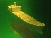 Bermuda DreieckMiami, FL - A scaled down replica of a cargo ship used in the "Rogue Wave" experiment shown floating in the wave tank at the University of Miami.Bild: © National Geographic Channels