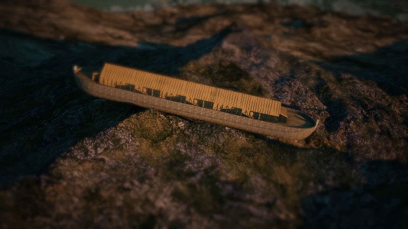 Das Geheimnis der SintflutKonnte die Arche Noah die Sintflut überstehen? Ein Modell der Arche im Wellenbecken-Test in Bremerhaven.Bild: © ZDF und Jörg Rambaum./Jörg Rambaum