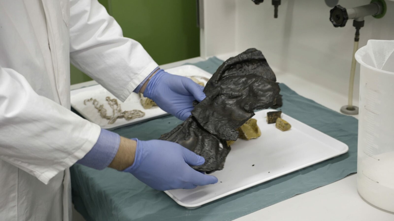Der Fluch des PharaosExperiment im Labor: Evolutionsmediziner Prof. Dr. Frank Ru?hli mit einbalsamierter Schweineleber.Bild: © ZDF und Matthias Kraus./Matthias Kraus