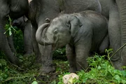 Chinas letzte ElefantenEin Baby-Elefant inmitten seiner HerdeBild: © BR / © Richard Kirby