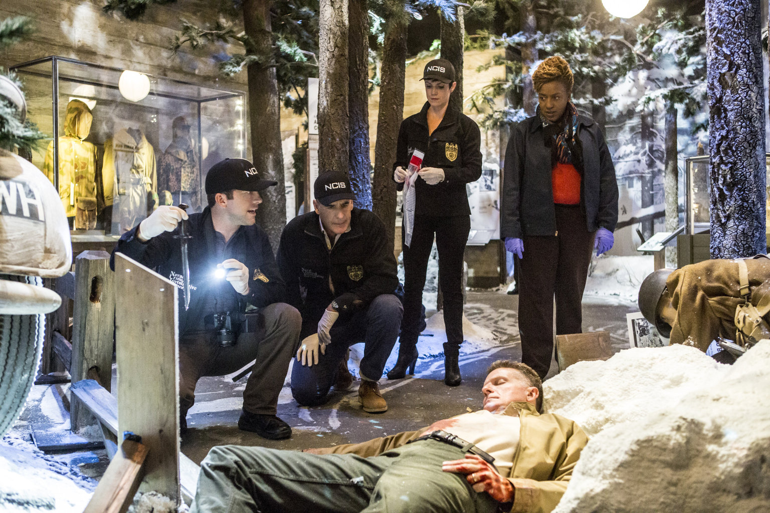Der Mann im LochIm Militärmuseum wird eine Leiche gefunden. Bei den Untersuchungen führt Pride (Scott Bakula, 2.v.l.), Brody (Zoe McLellan, 2.v.r.), Lasalle (Lucas Black, l.) und Wade (CCH Pounder, r.) eine Spur nach Afghanistan ...Bild: © 2014 CBS Broadcasting Inc. All Rights Reserved. Lizenzbild frei