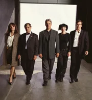 Ein Millimeter(1. Staffel) - Die Mitglieder des Naval Criminal Investigation Service: Leroy Gibbs (Mark Harmon, M.), Dr. Donald Mallard (David McCallum, 2.v.l.), Caitlin Todd (Sasha Alexander, l.), Abby Sciuto (Pauley Perrette, 2.v.r.) und Anthony DiNozzo (Michael Weatherly, r.) ...Bild: © 13th Street