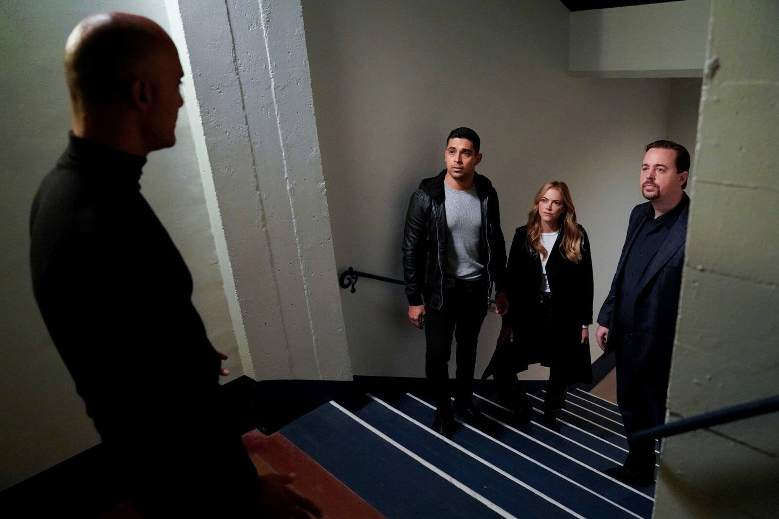 Falsche Töne(v.l.n.r.) Neil Farzad (Eyas Younis); Nick Torres (Wilmer Valderrama); Ellie Bishop (Emily Wickersham); Timothy McGee (Sean Murray)Bild: © Greg Gayne / CBS / CBS ENTERTAINMENT / ©2019 CBS Broadcasting, Inc. All Rights Reserved.